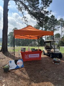Mavendog sponsored the 3rd hole, a picturesque water shot that provided a challenging and exciting test for golfers throughout the day. Our Marketing and Sales Coordinator, Jada Cardwell had a great time interacting with attendees and showcasing what Mavendog has to offer. She greeted players with refreshing drinks, Mavendog merch, and golf gadgets. The beautiful weather made the day even more enjoyable, and the view from our hole was simply stunning.