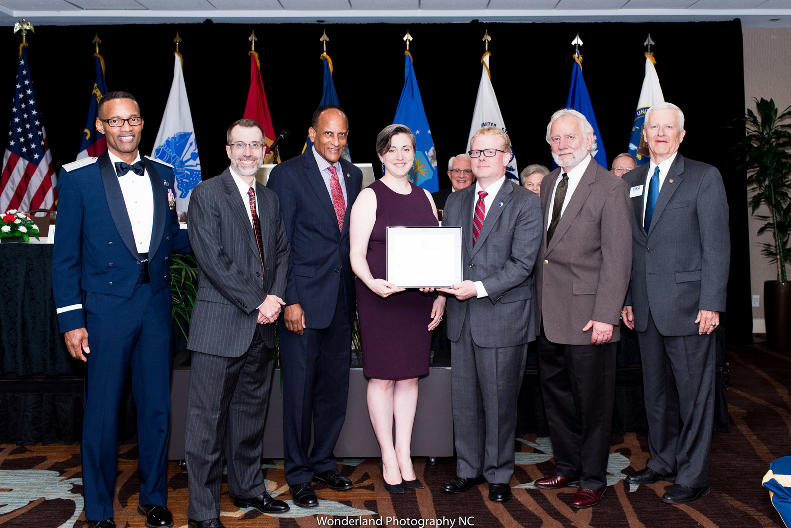 Pictured (from Left to Right) are Brig. Gen. Clarence Ervin, Chief of Staff for the North Carolina Air National Guard; Jon Vordermark, Mavendog; Larry Hall, Secretary for the NC Dept. of Military & Veterans Affairs; Elizabeth Condrick, Mavendog; Roger Hopper, Mavendog; Tom Fehlman, Mavendog; Ron Bogle, NC ESGR State Chair
